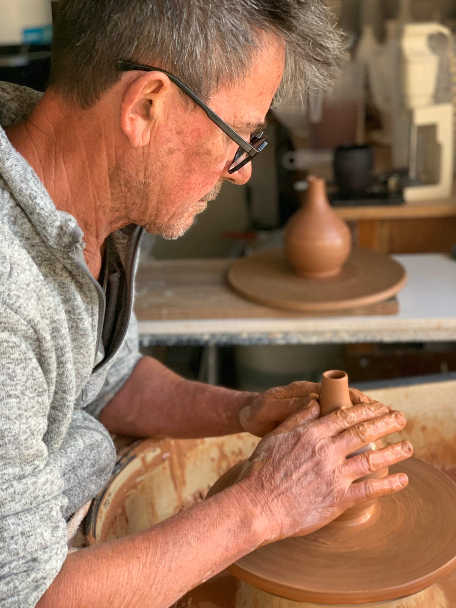 He then worked at Tabletop Ceramics in Sandringham for 6 years, learning the skills necessary to be a production thrower, culminating in him becoming their master thrower and production manager.