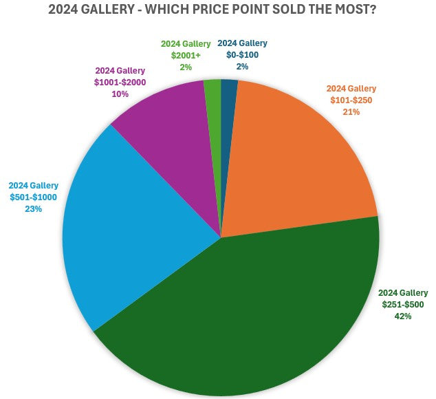 The below data has been gathered from the last three Art Shows, and has been presented to help artists and makers consider their pricing strategy for their artwork and products.