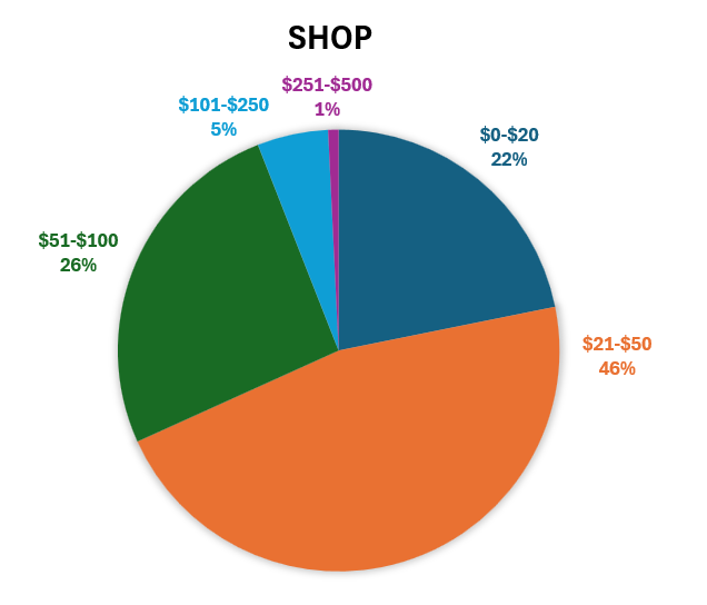In 2024, almost 70% of items sold were priced under $50, with a quarter priced $50-$100.