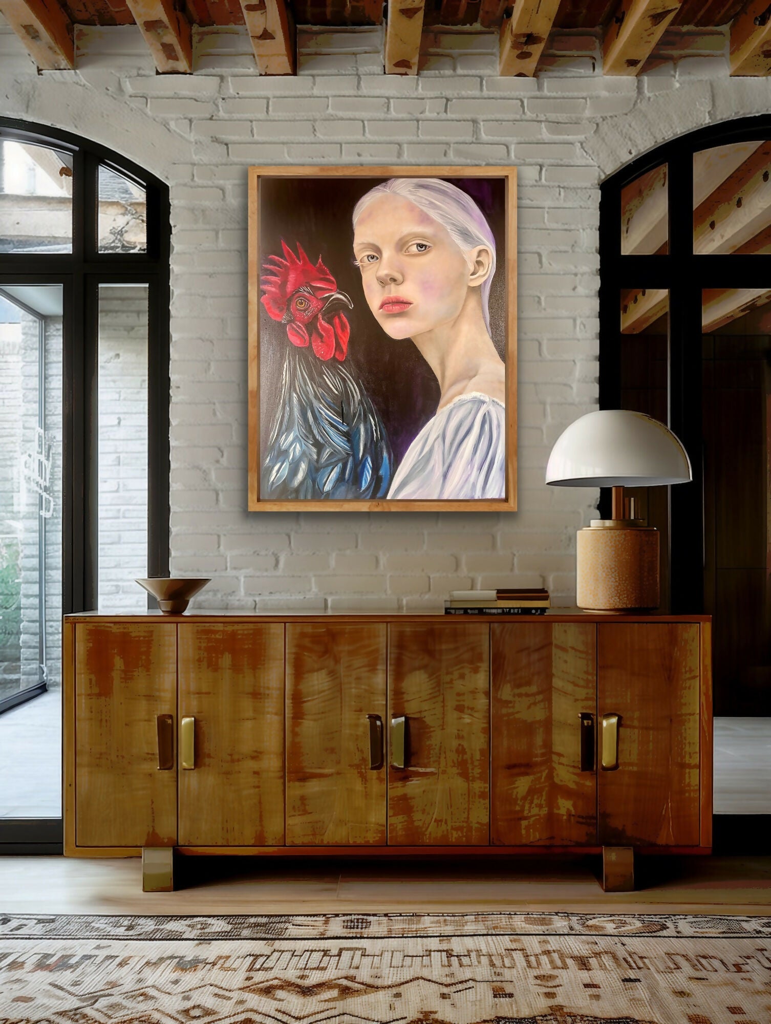 A girl and her rooster