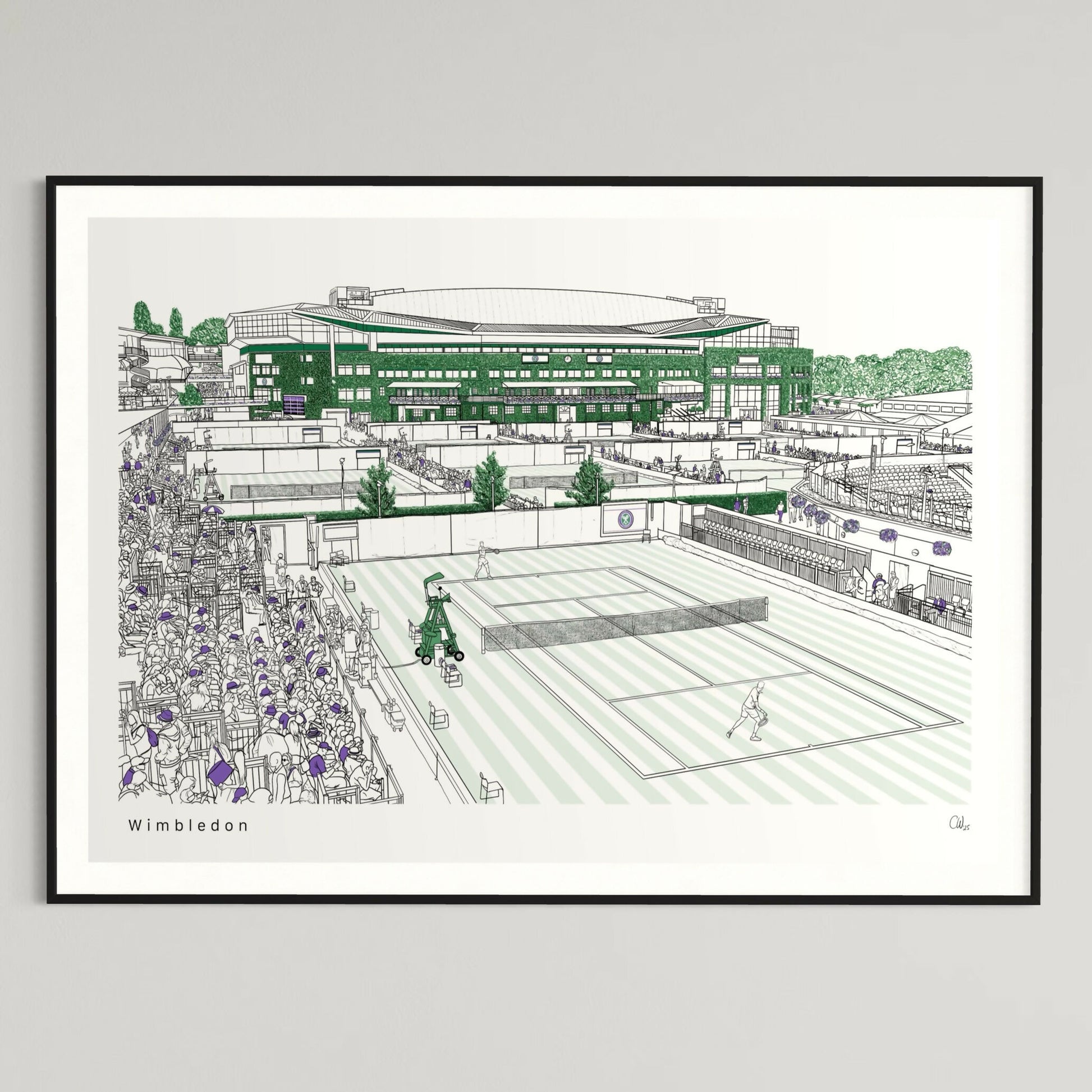 Each artwork is sketched entirely by hand using an iPencil and iPad, with some pieces taking over 100 hours to complete. Her process is slow and intentional, allowing her to carefully capture the essence and character of each location.
