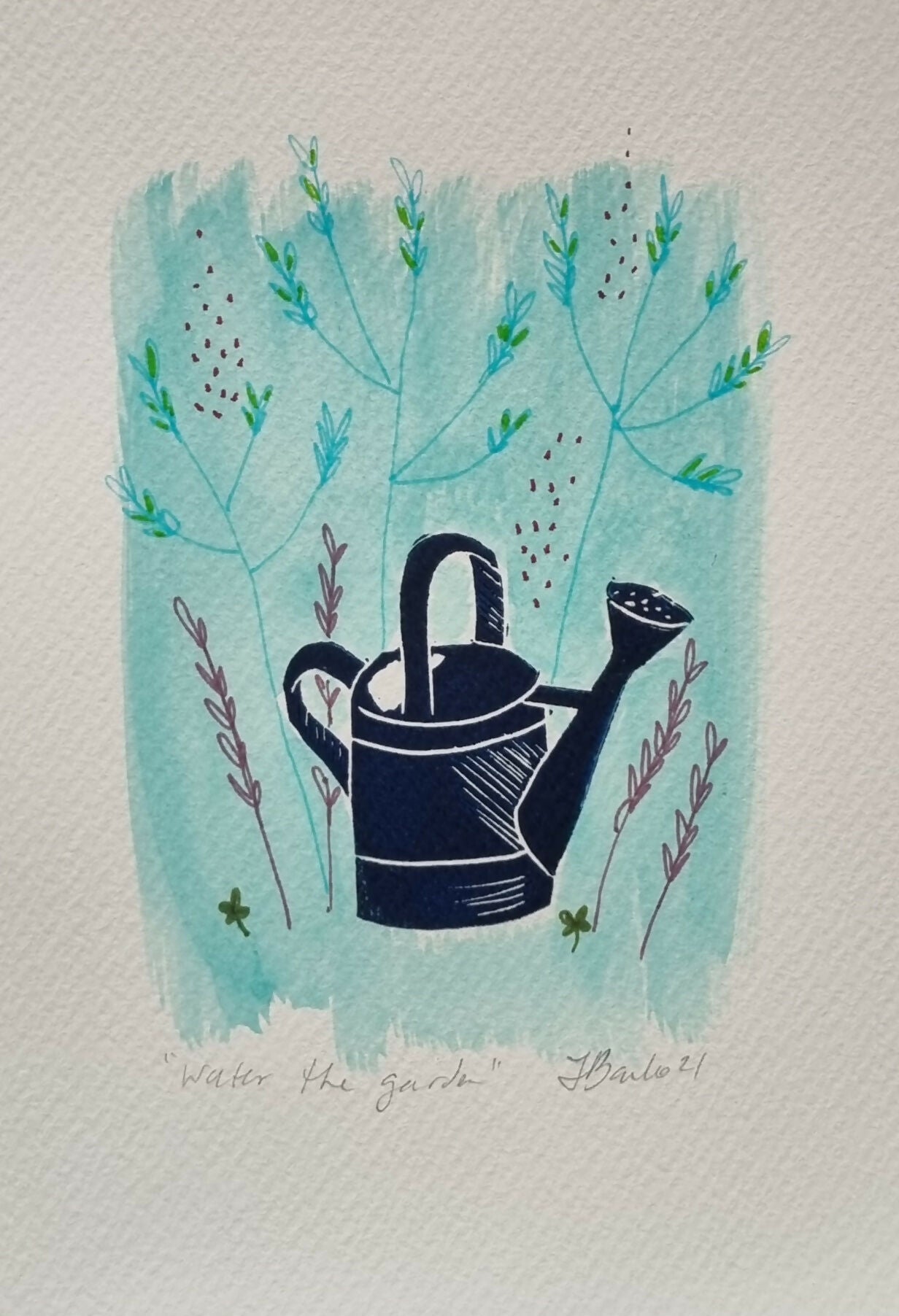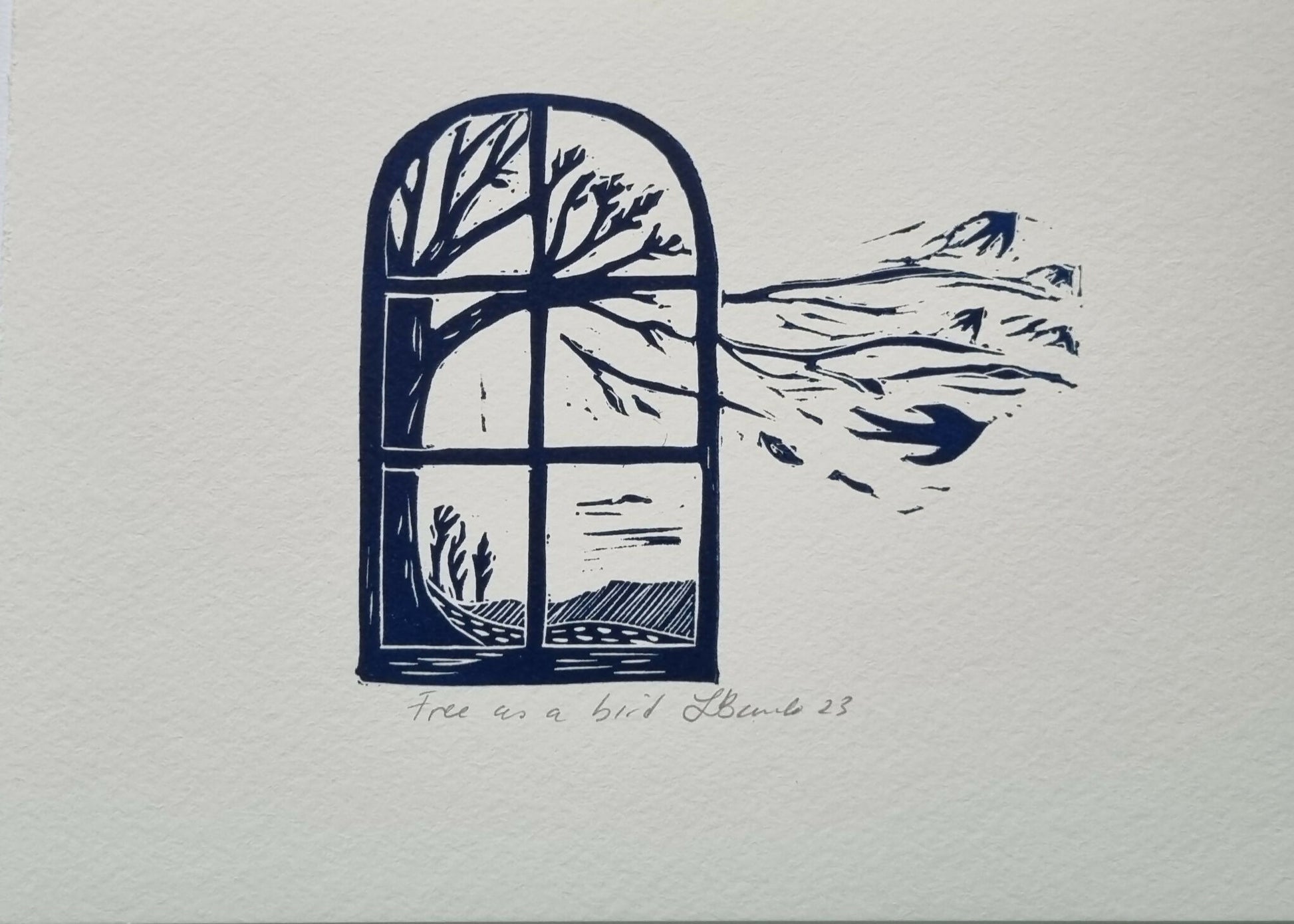 A5 original handprinted linocuts, mixed media and collage on watercolour paper