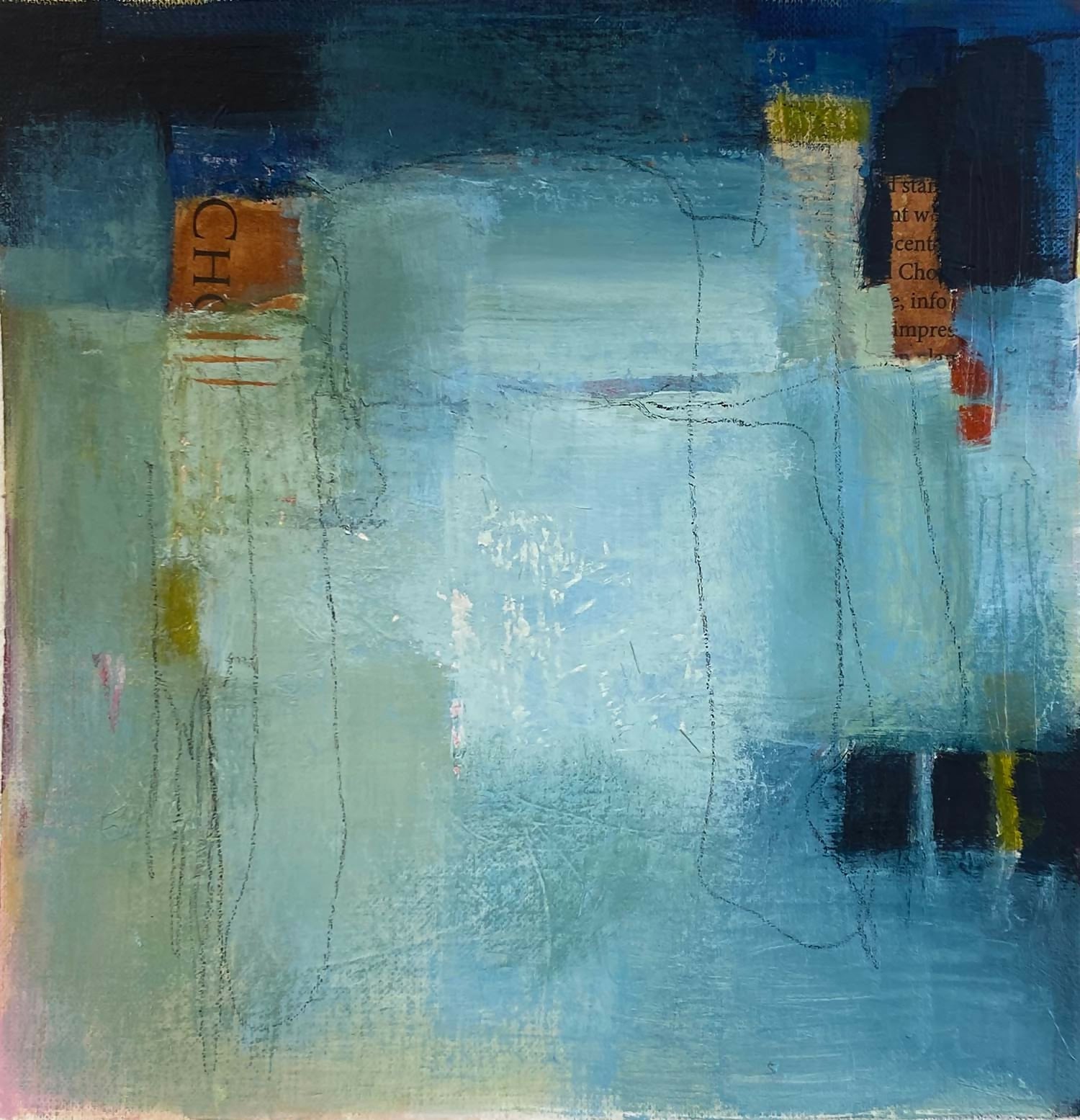 Inspired by the bay, Bay Life is an acrylic and mixed media painting on paper, framed in a timber frame with glass.
