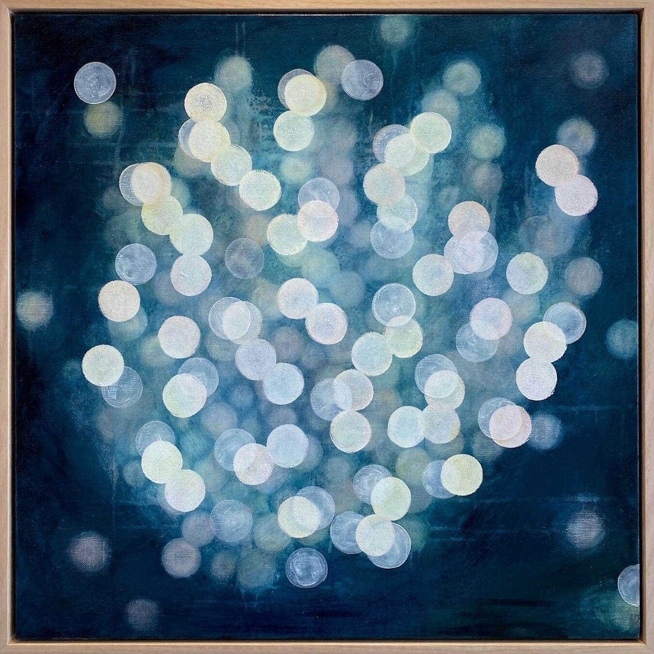 Soft layers and luminous circular motifs create a dreamlike sense of depth, echoing the pulse of ocean light. Peaceful yet alive, this piece celebrates the fragility and wonder of our marine world, a contemporary ode to life beneath the waves.