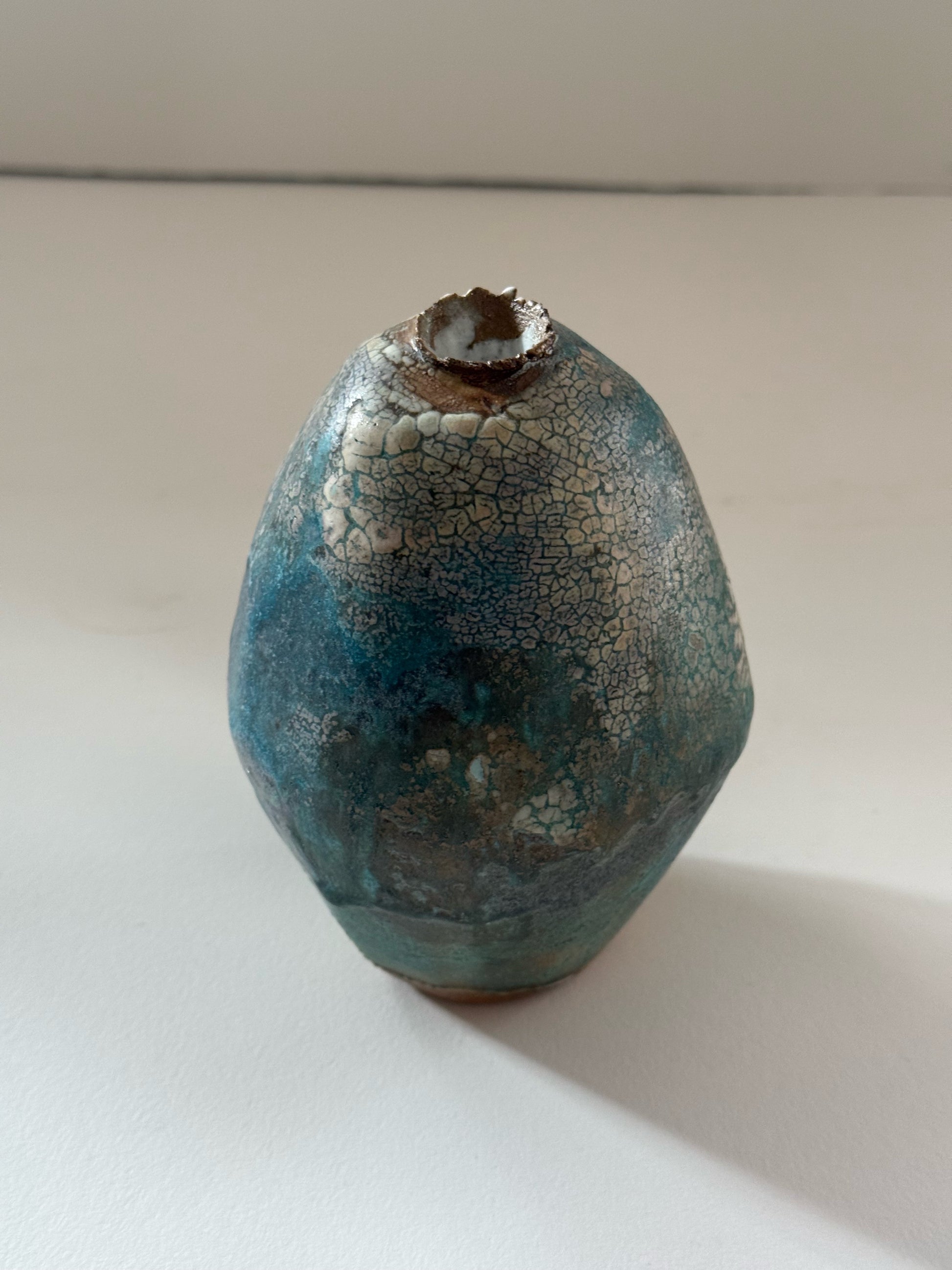 Description: This Blue Mud Pod Stoneware Vessel combines strength with stylish simplicity. Its rich blue hue and organic shape make it a standout piece. Approx 13cm tall.