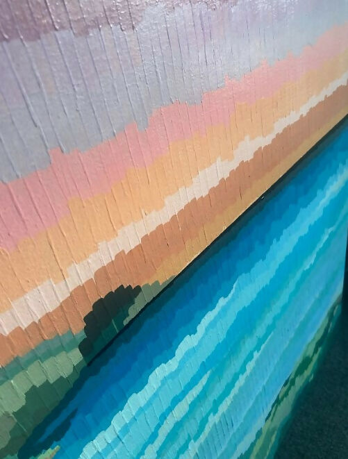 This artwork is for beach goers, the Mt Eliza locals, the Canadian Bay lovers, the sunset chasers — and everyone in between. At a grand 150x120cm, it’s designed to make a statement in your home, featuring my signature textured line style.