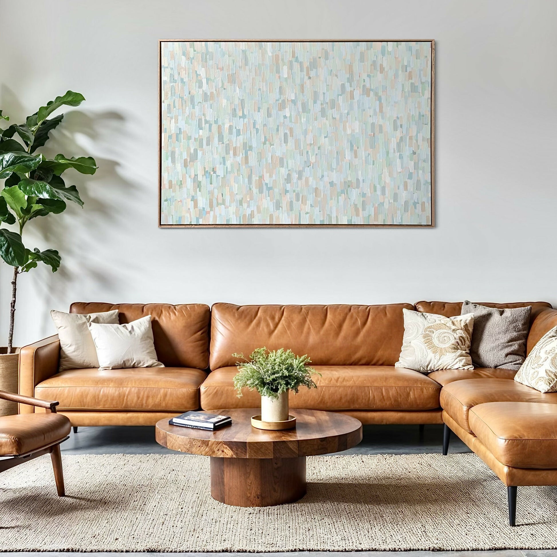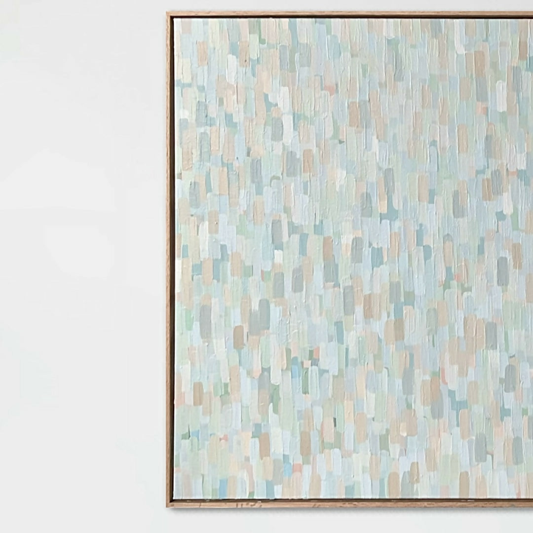 Introducing 'Coastal Layers' - a soft, gentle piece that will make a stunning statement in any home. Created using MY MOST popular technique (layered textured lines), the palette of this piece is inspired by the gorgeous and unique coastline of the Mornington Peninsula. This artwork also features an incredible, high-quality floating frame made from oak timber.