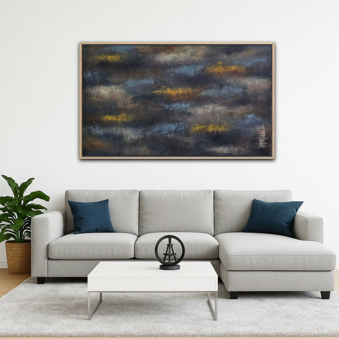 90cm x 150cm, mixed media on canvas, box-framed in American ash by Southern Buoy.