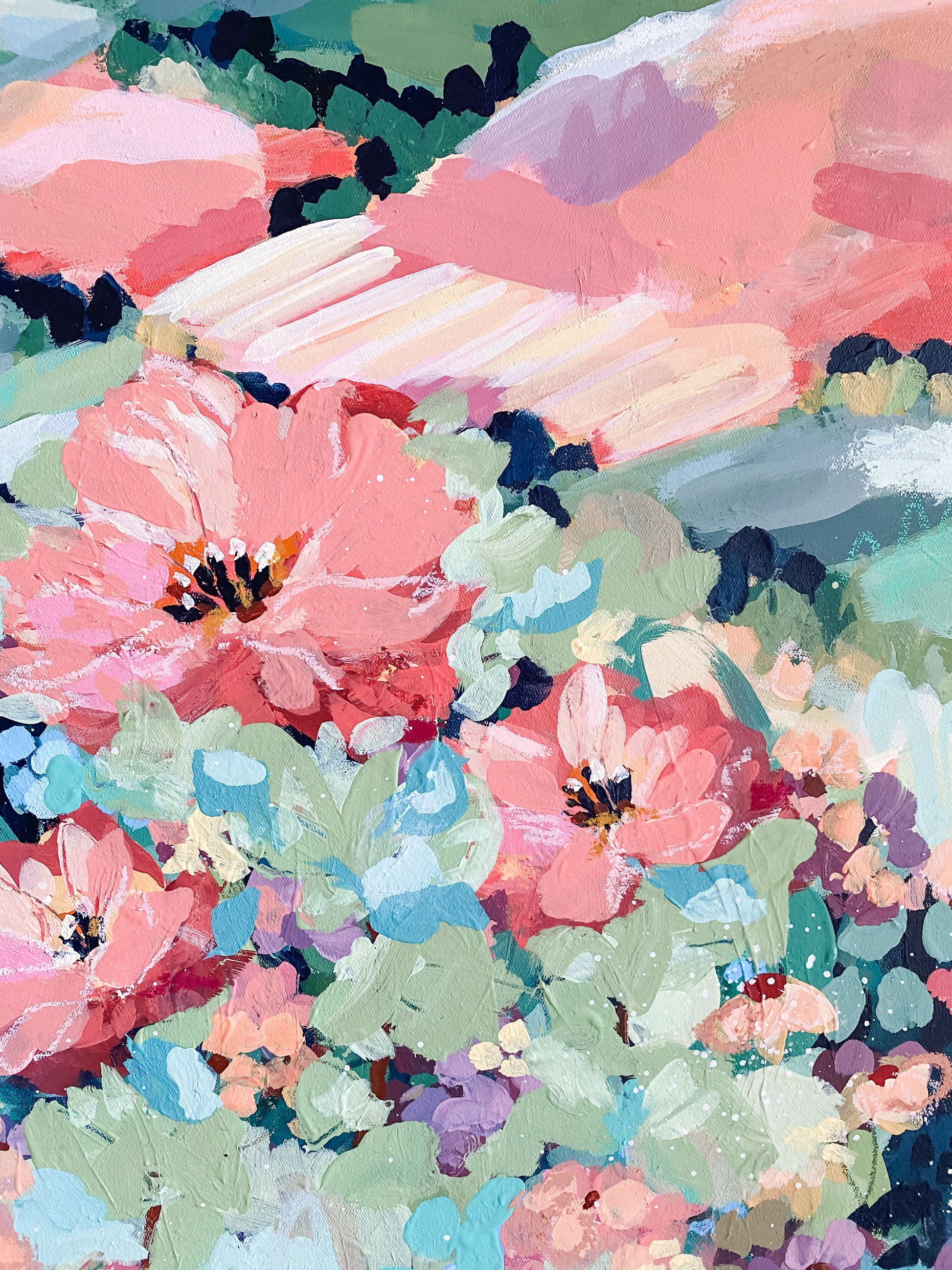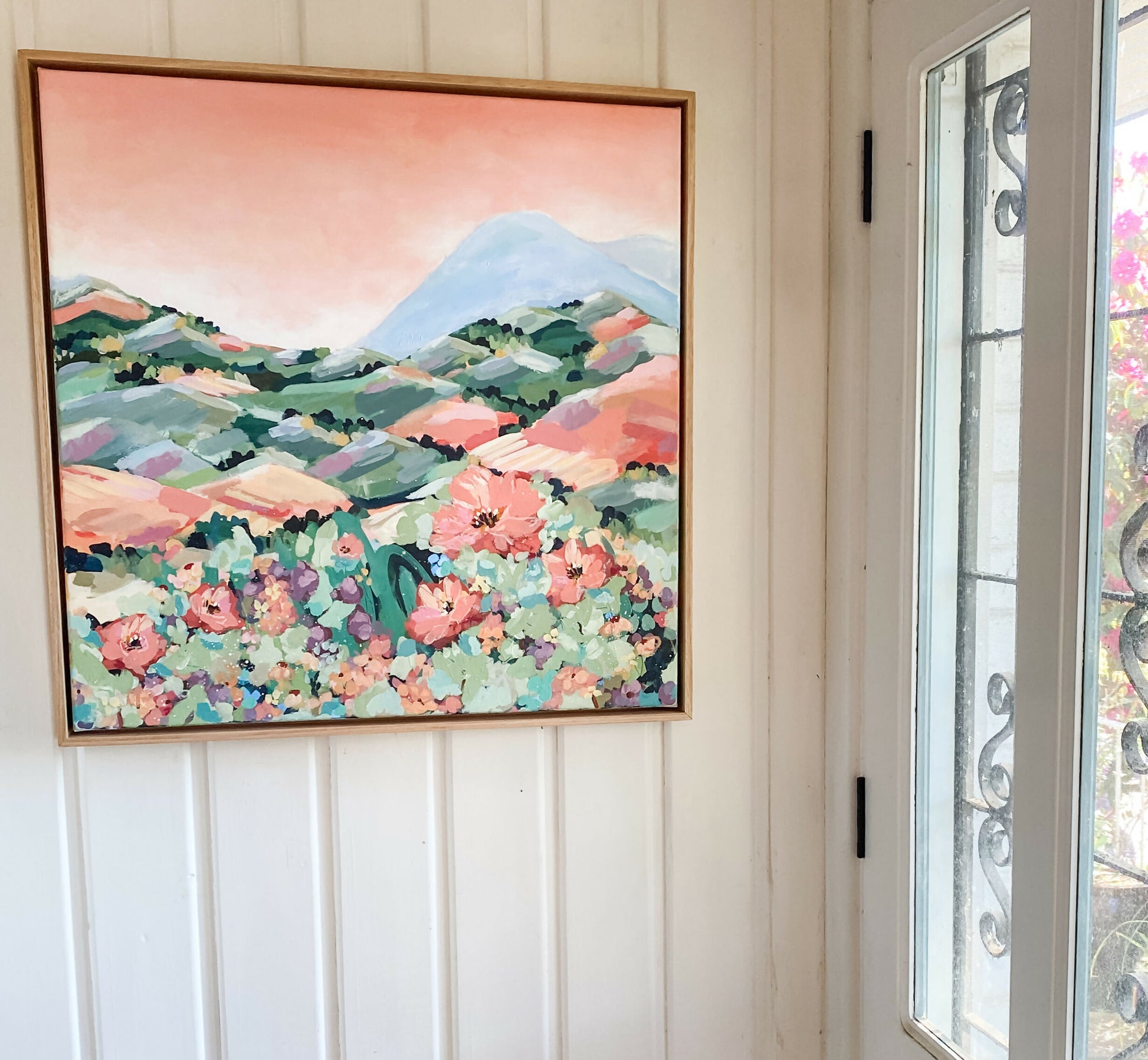 Step into a world where soft pastel hues blend seamlessly, evoking a sense of calm and tranquility.. This intuitive landscape, painted with loose, expressive brushstrokes, invites you to take a moment and breathe a little deeper. It’s not just a pretty scene; it’s a reminder that beauty and peace can be found in the everyday. Created with a real desire to bring a sense of “ahhh” into your life.