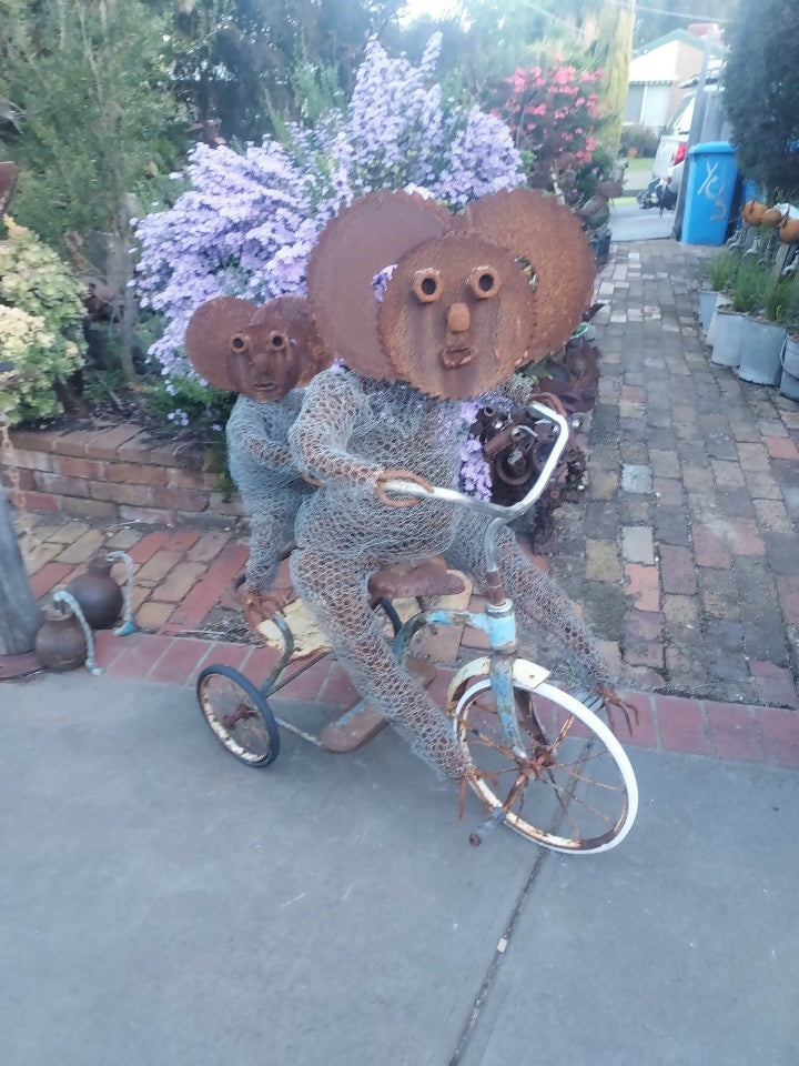 Koalas on trike. H: 1200mm x W: 600 x Depth: 1000mm