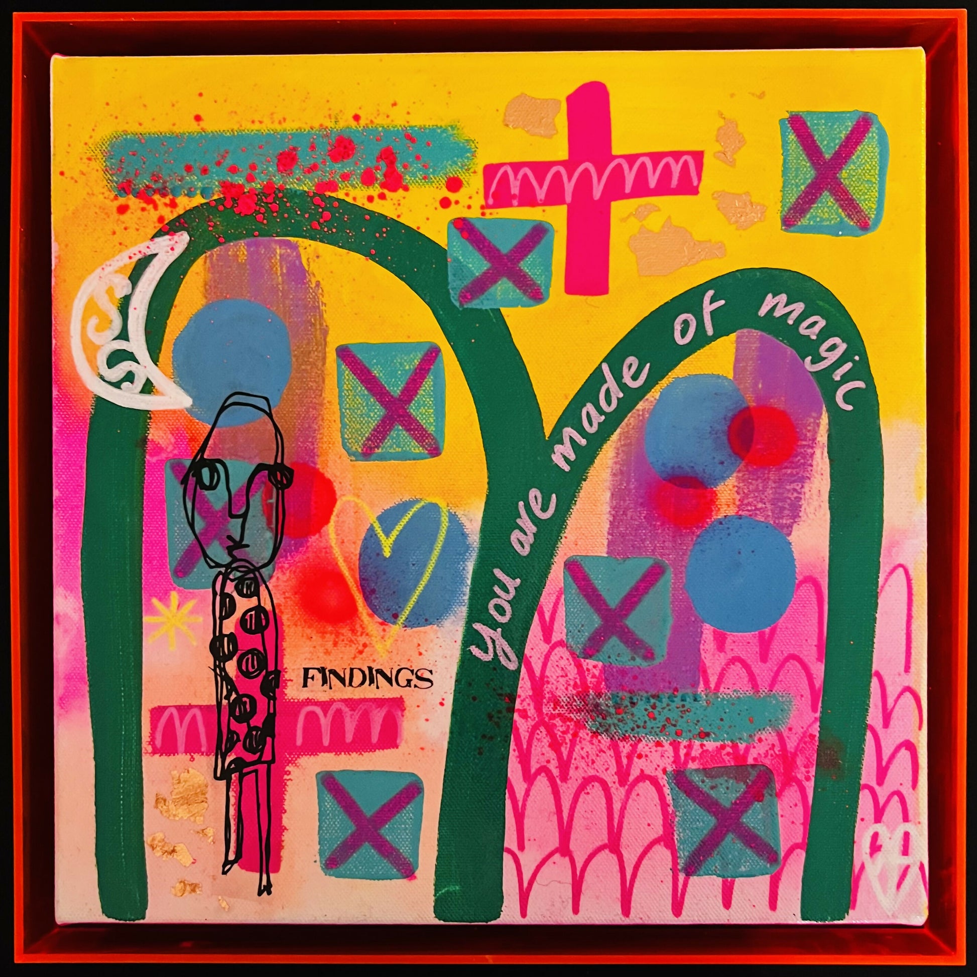Finding Your Magic is a musing on connecting with your inner strength and sense of wonder, a reminder that everything you need is already within you. Through colours, shapes and symbolism this piece reflects the process of self-discovery; messy, beautiful, personal, and is invitation to pause, reflect, and remember the magic you carry inside.