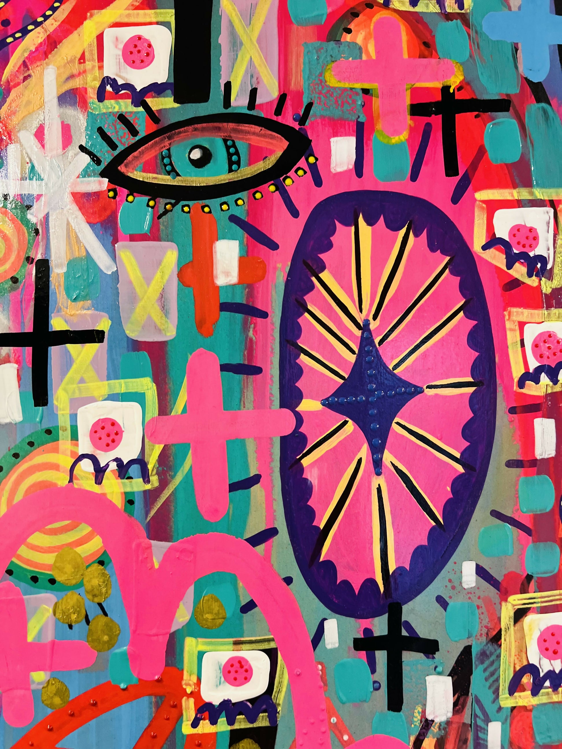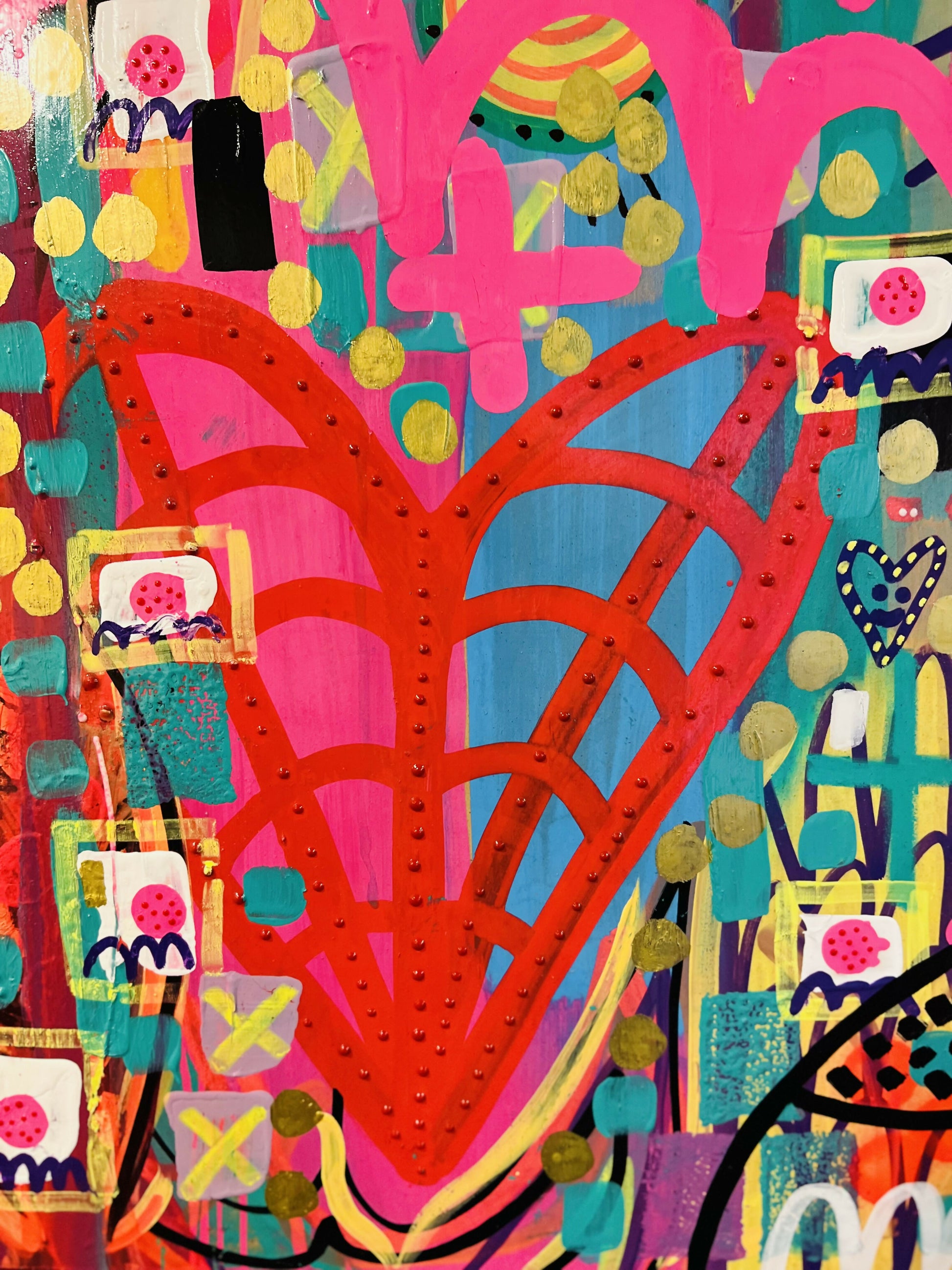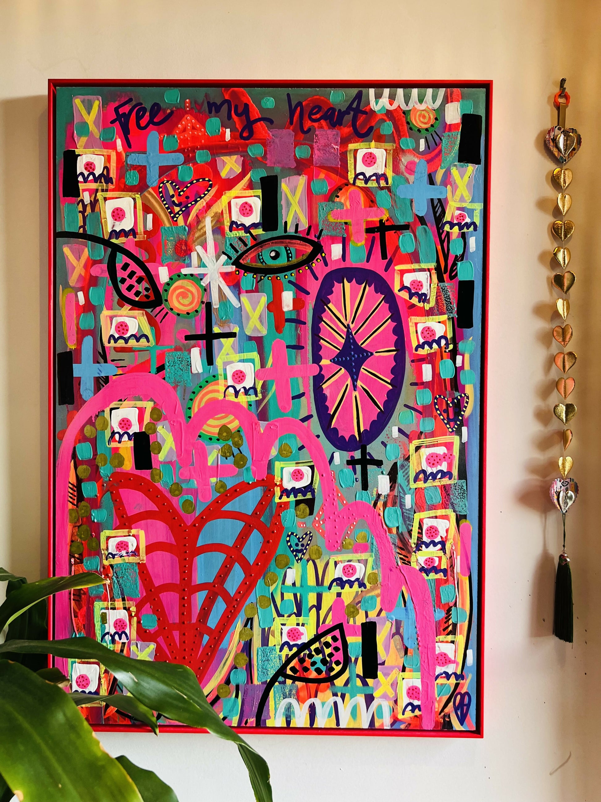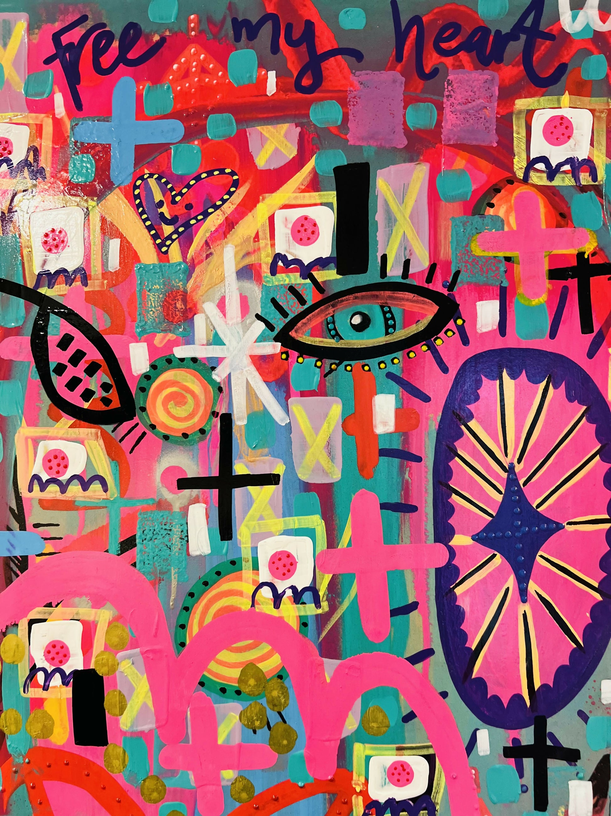 This colour, energy and love filled work celebrates the gentle nurturing and small to expansive opening of one's own heart, which is not always easy but rewards with radiance and connection.