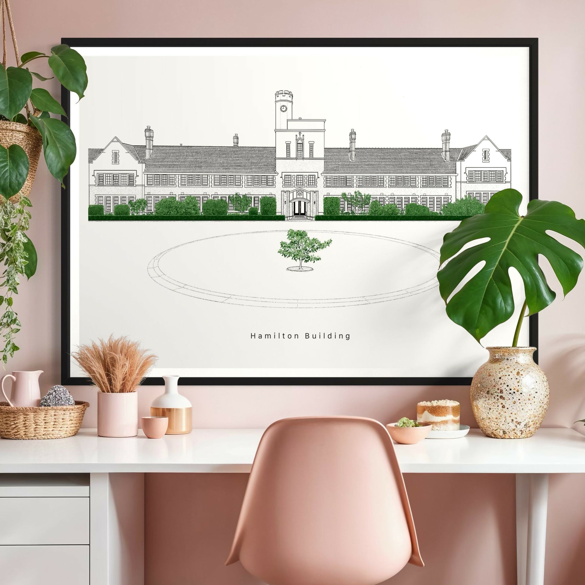 Each artwork is sketched entirely by hand using an iPencil and iPad, with some pieces taking over 100 hours to complete. Her process is slow and intentional, allowing her to carefully capture the essence and character of each location.