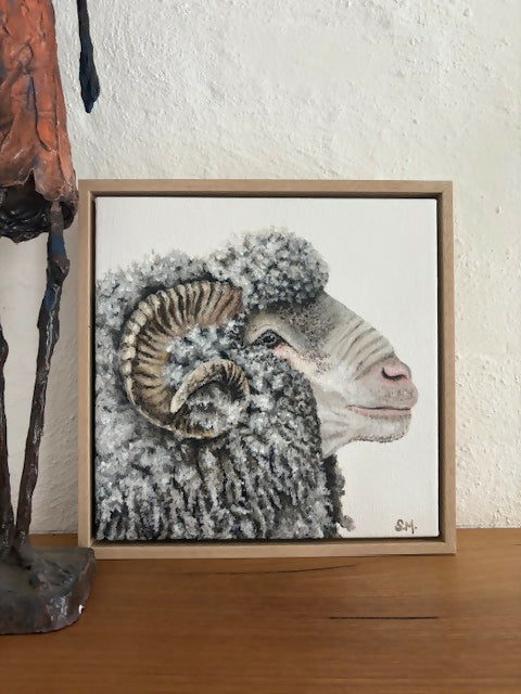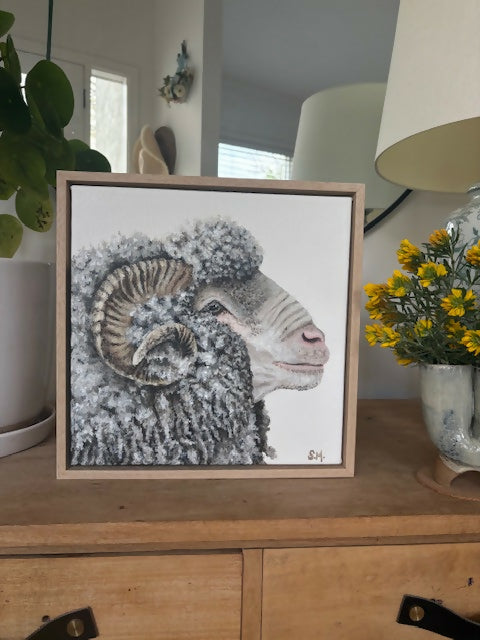 “Hugo” acrylic on 30x30cm canvas with a floating timber frame.