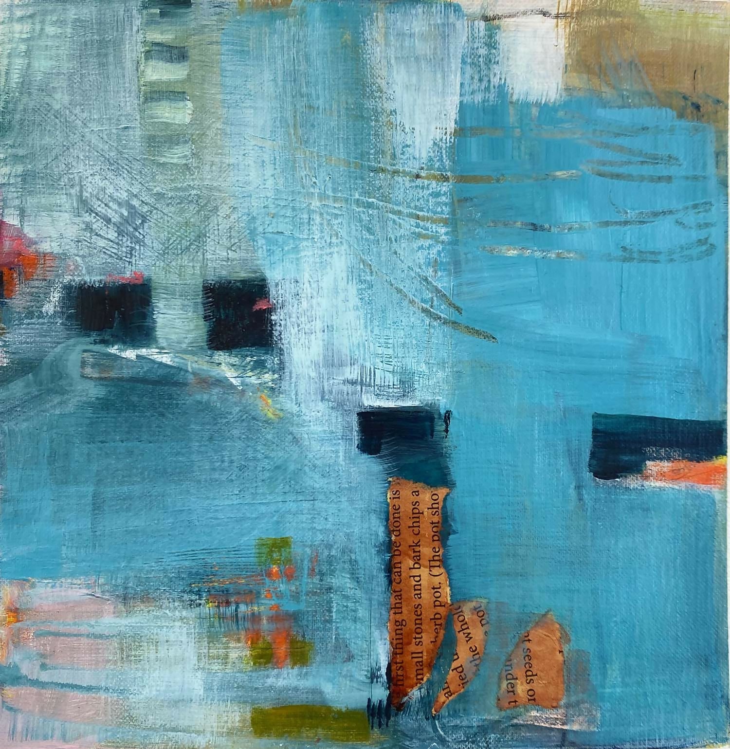 Inspired by the bay, Inner Harbour is an acrylic and mixed media painting on paper, framed in a timber frame with glass.