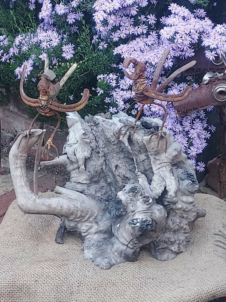 Two wirebirds on stump. H: 400mm x W: 400mm x Depth: 300mm