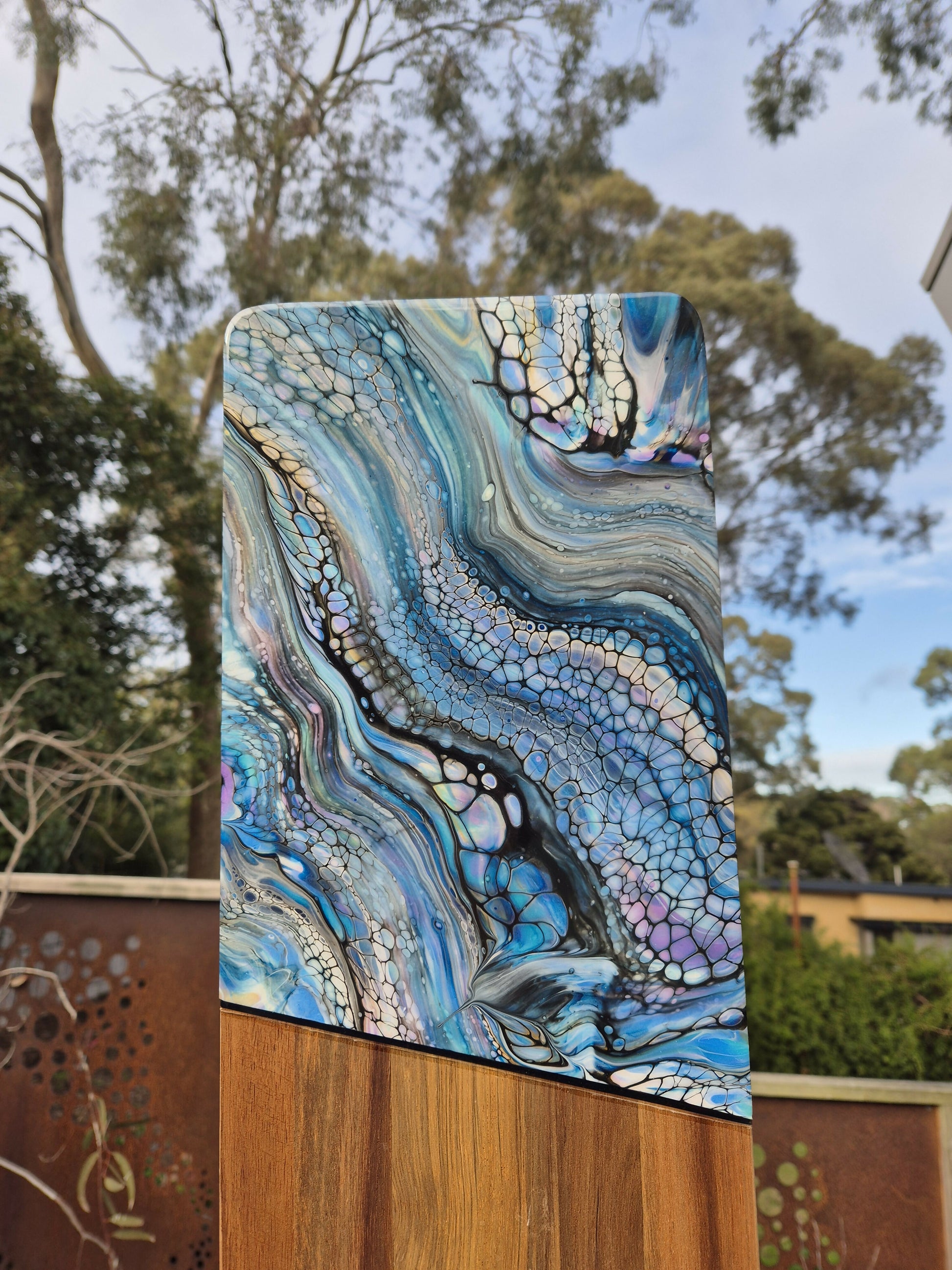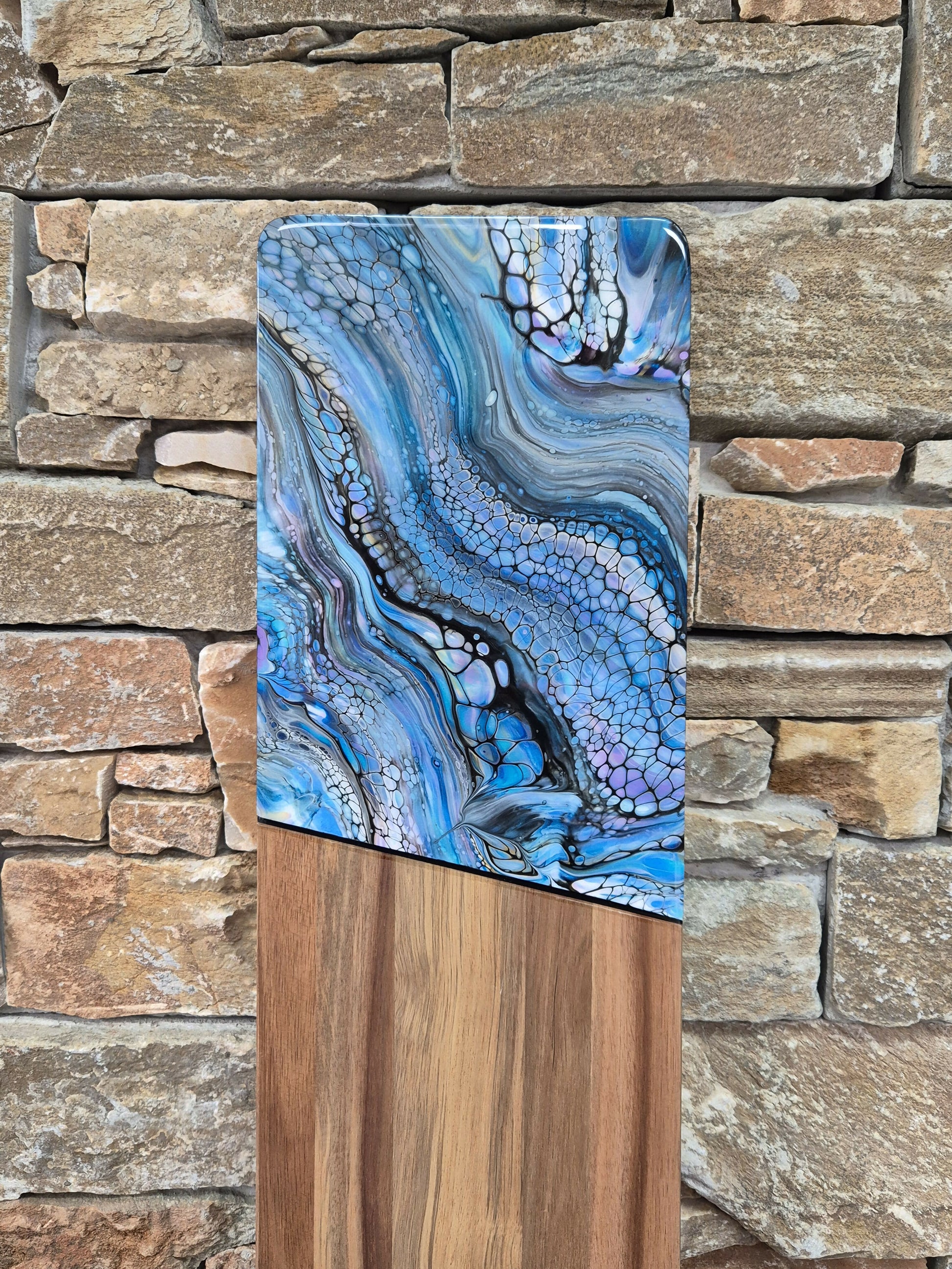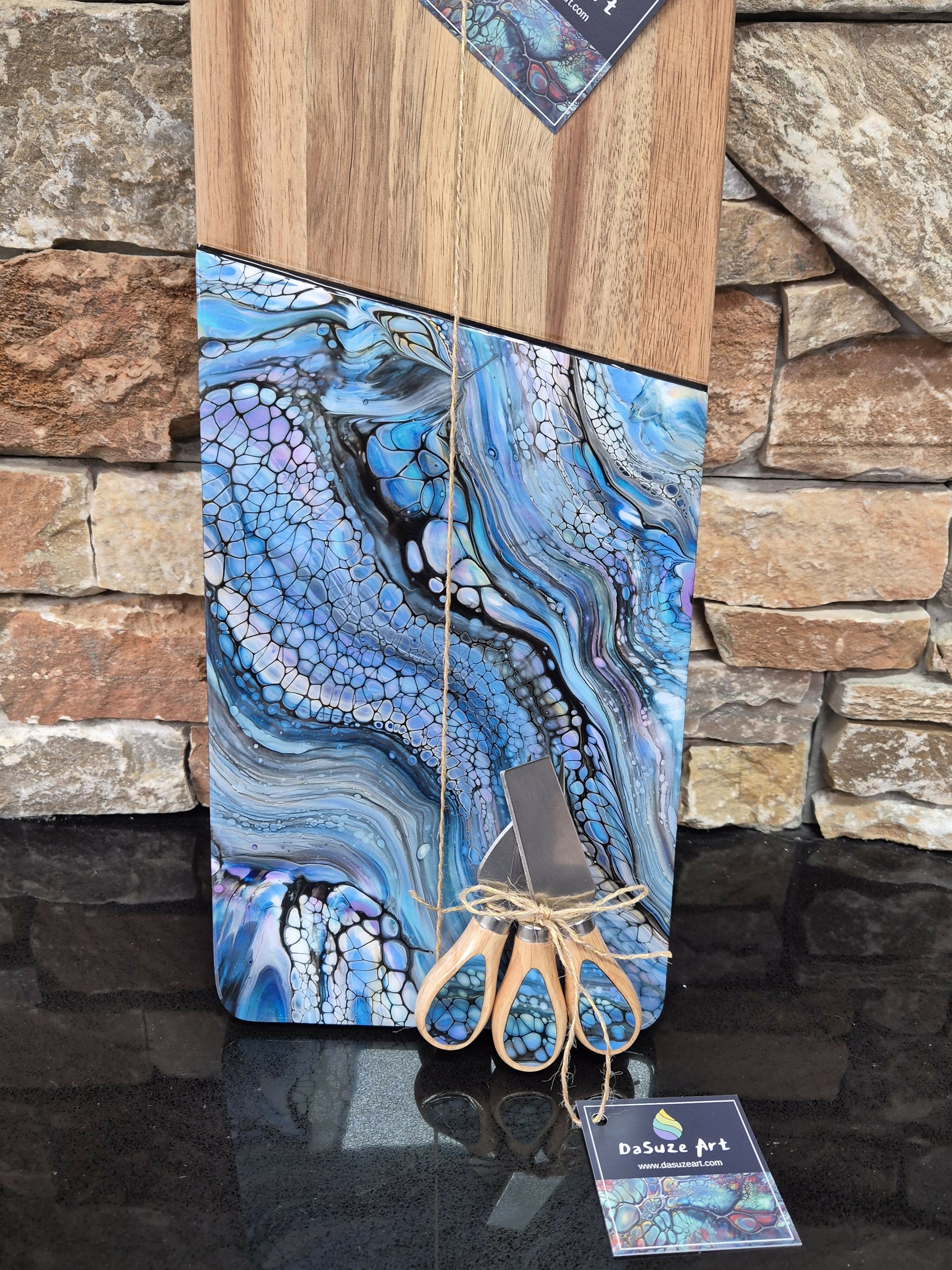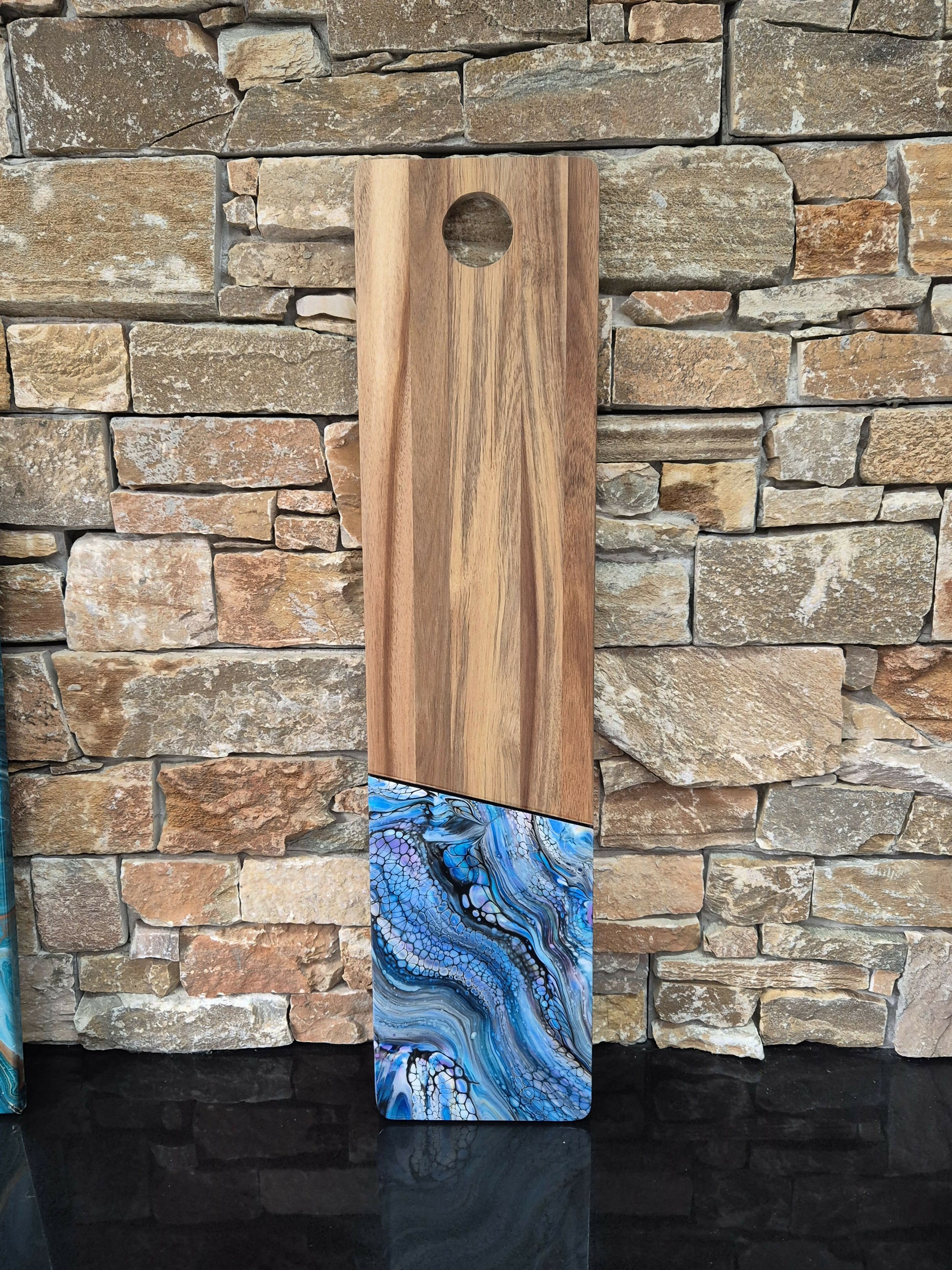 This striking charcuterie board is in gorgeous blues. Finished with food safe resin, this 80cm long by 19cm wide board is guaranteed to bring some bling to your next dinner party.