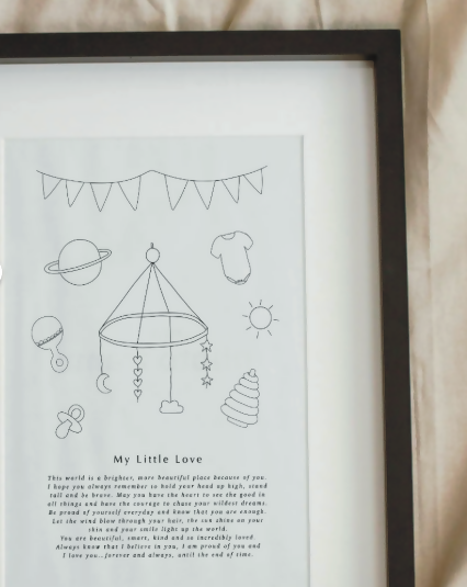 A beautiful print with a fine line drawing and meaningful, heartfelt words.