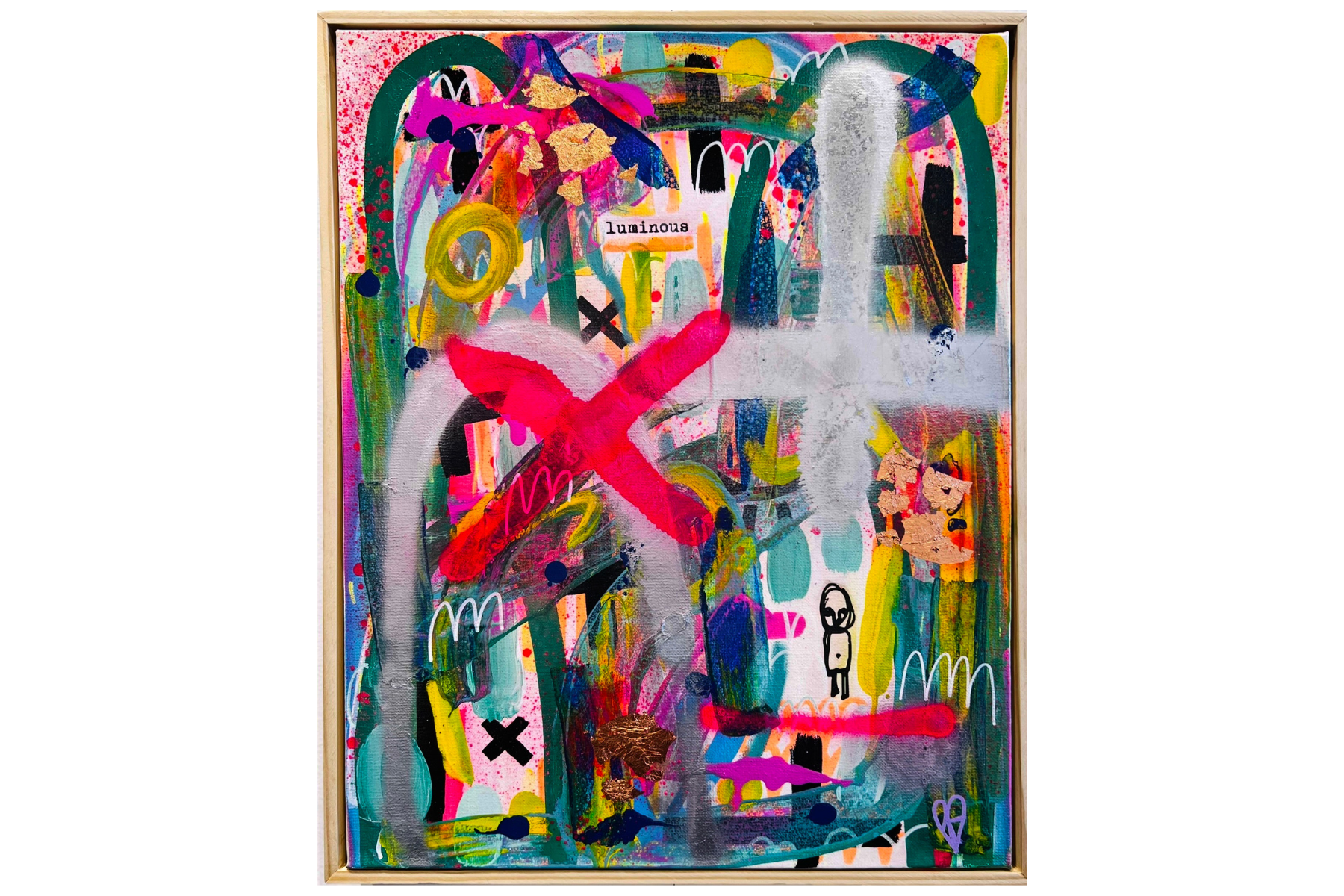 Mixed media on canvas framed in timber and is 52 x 42cm