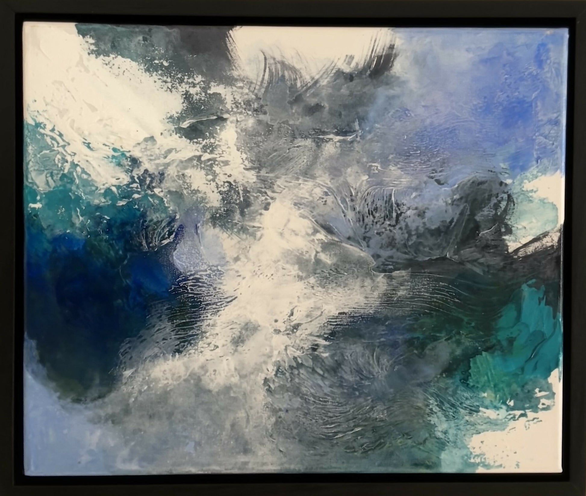 Framed in black timber. 28.5cm (H) x 33cm (W).