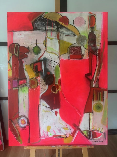 A bold, big abstract painting capturing the frivolity and joy of a summer holiday, savouring the delights of a cold delicious gelato.