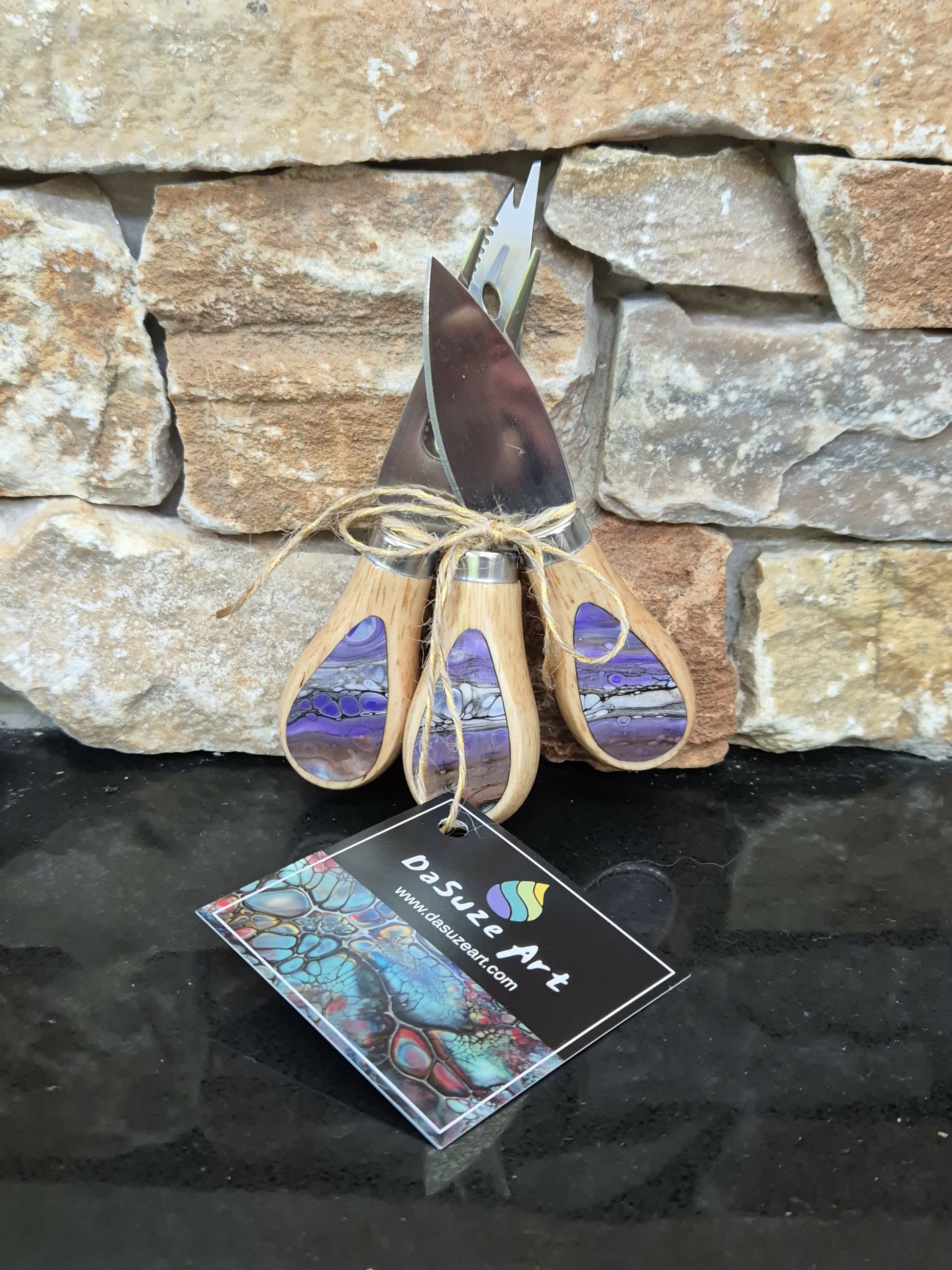 Gorgeous 3 piece cheese knife set - all original, hand painted. Terrific stocking stuffer for that unique gift.