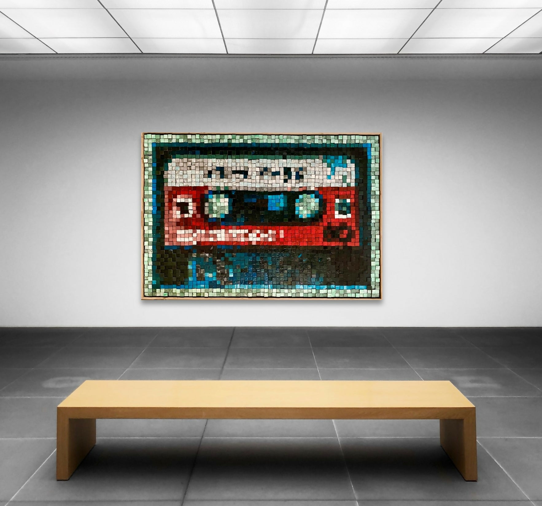 Mid-eighties and recording songs off the radio. The image brings back strong nostalgia and the excitement of what was in store for the nineties. This is strikingly colourful piece and would suit a den, creative area or studio.