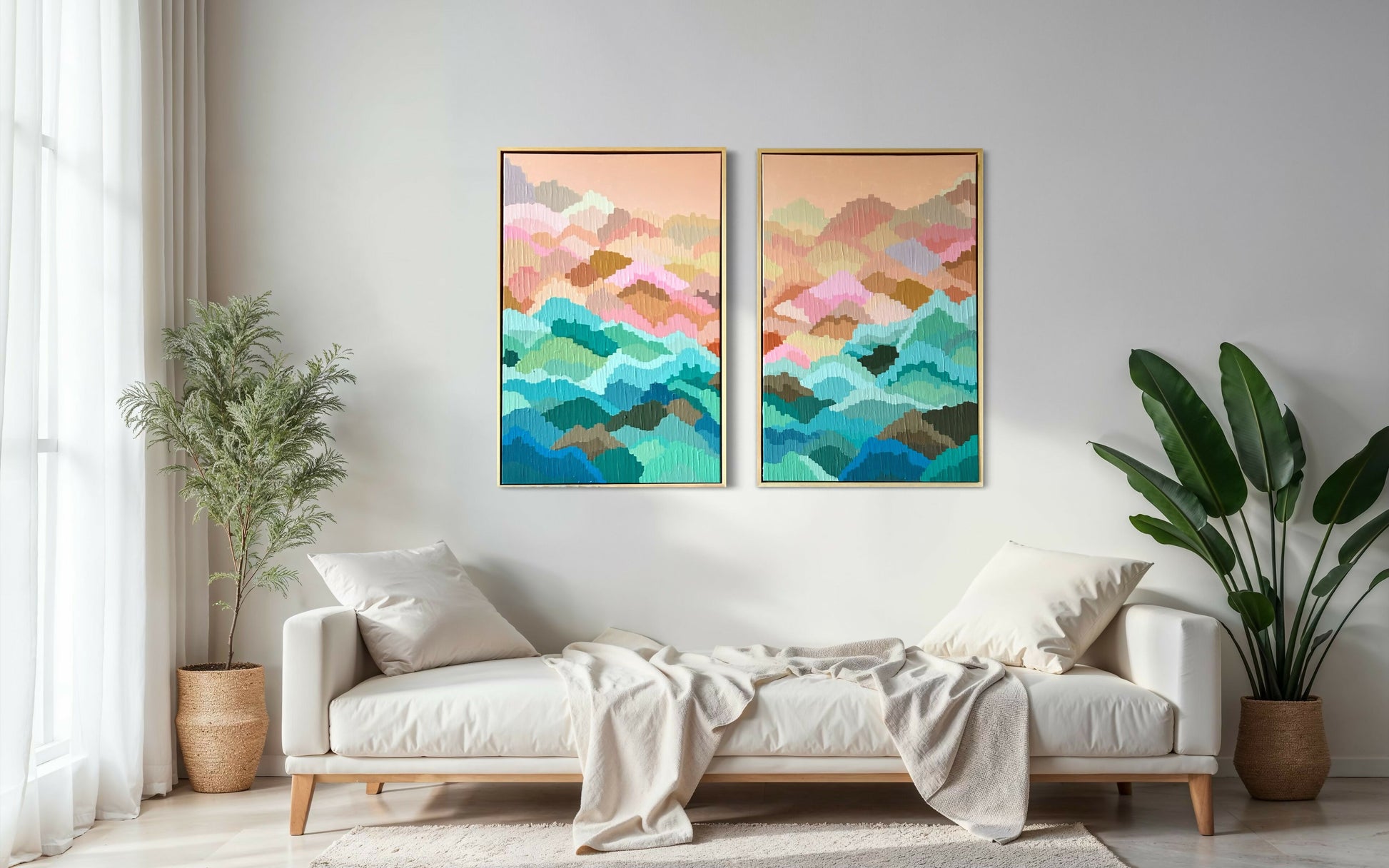 Inspired by a vibrant palette, this diptych set encompasses all the happiness and energy of Summer.
