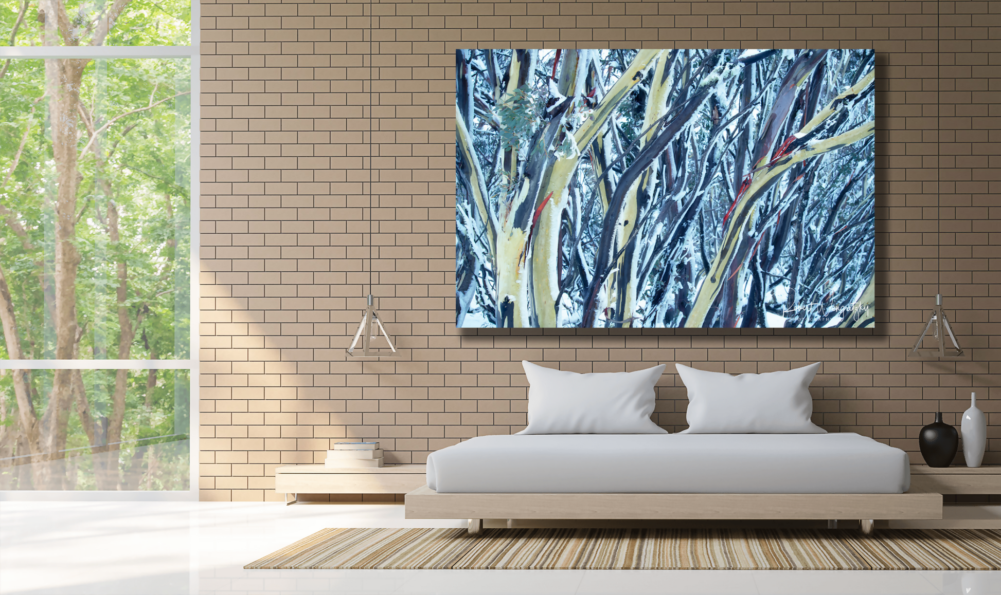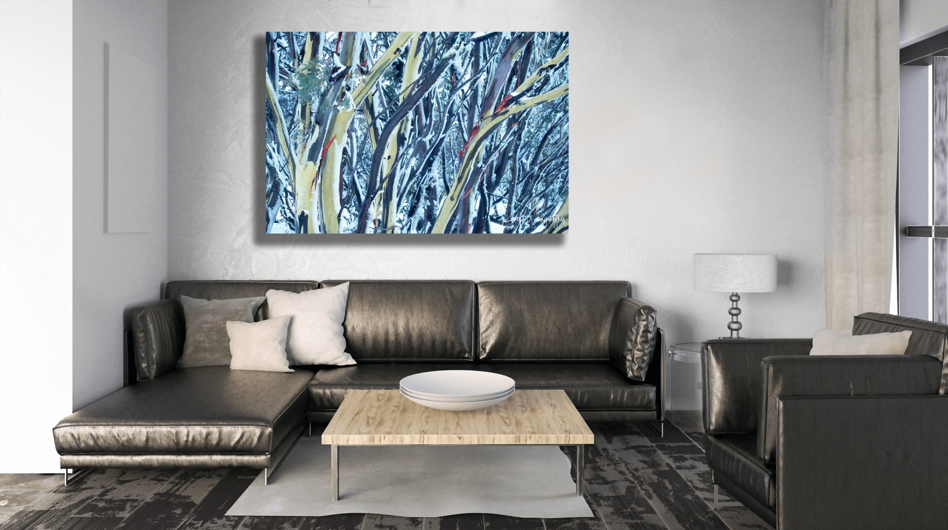- Printed on Metal, with a floating frame and high gloss, this piece has a modern, eye capturing look as it floats on your wall.
