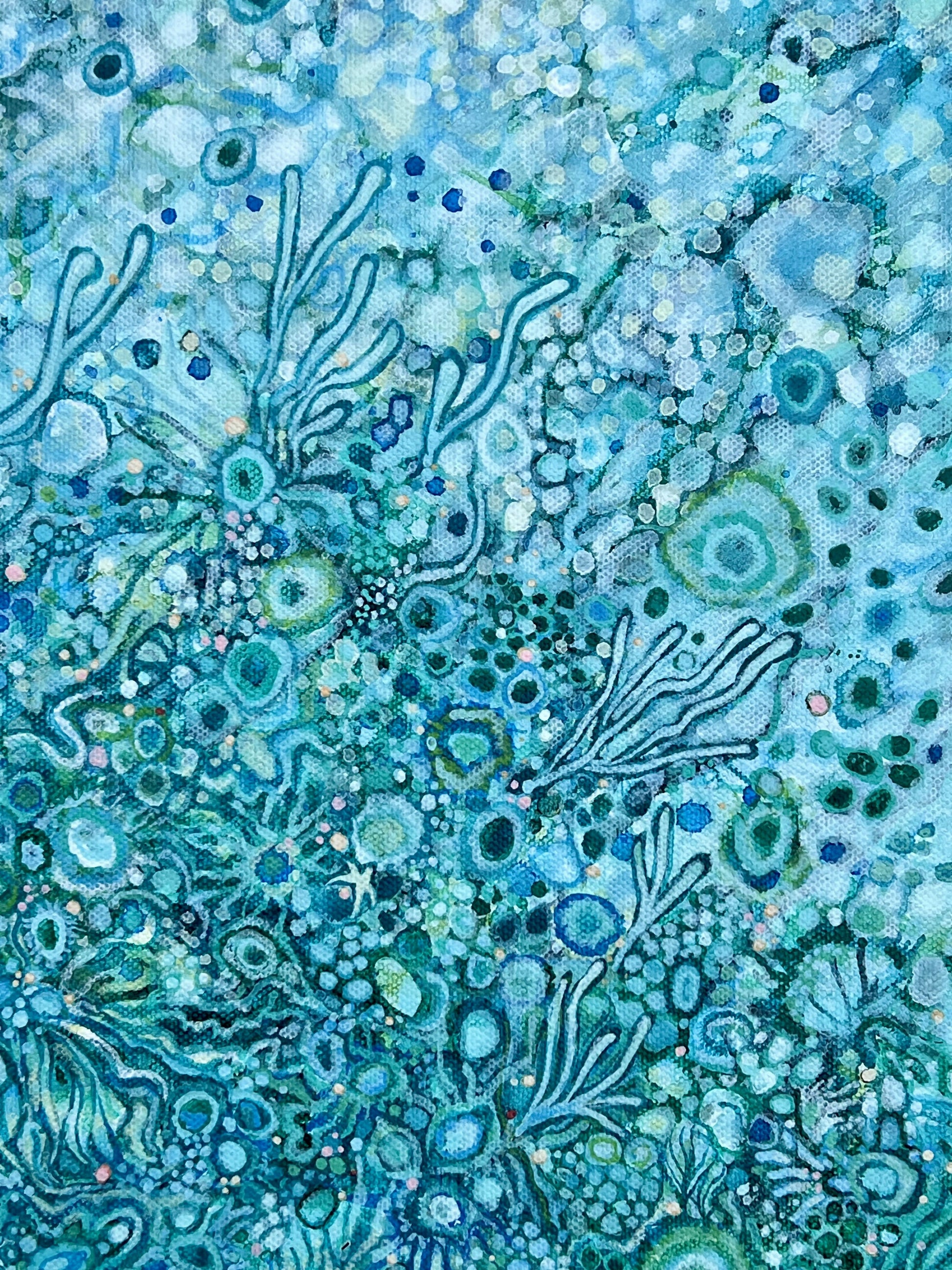 An abstract landscape artist, I enjoy building colour and depth through the use of fluid layers, which organically evolve by running and blending the paint on the canvas. Landscapes are my inspiration, where the collaboration of light, colour and movement create the shapes and patterns that somehow work perfectly together.